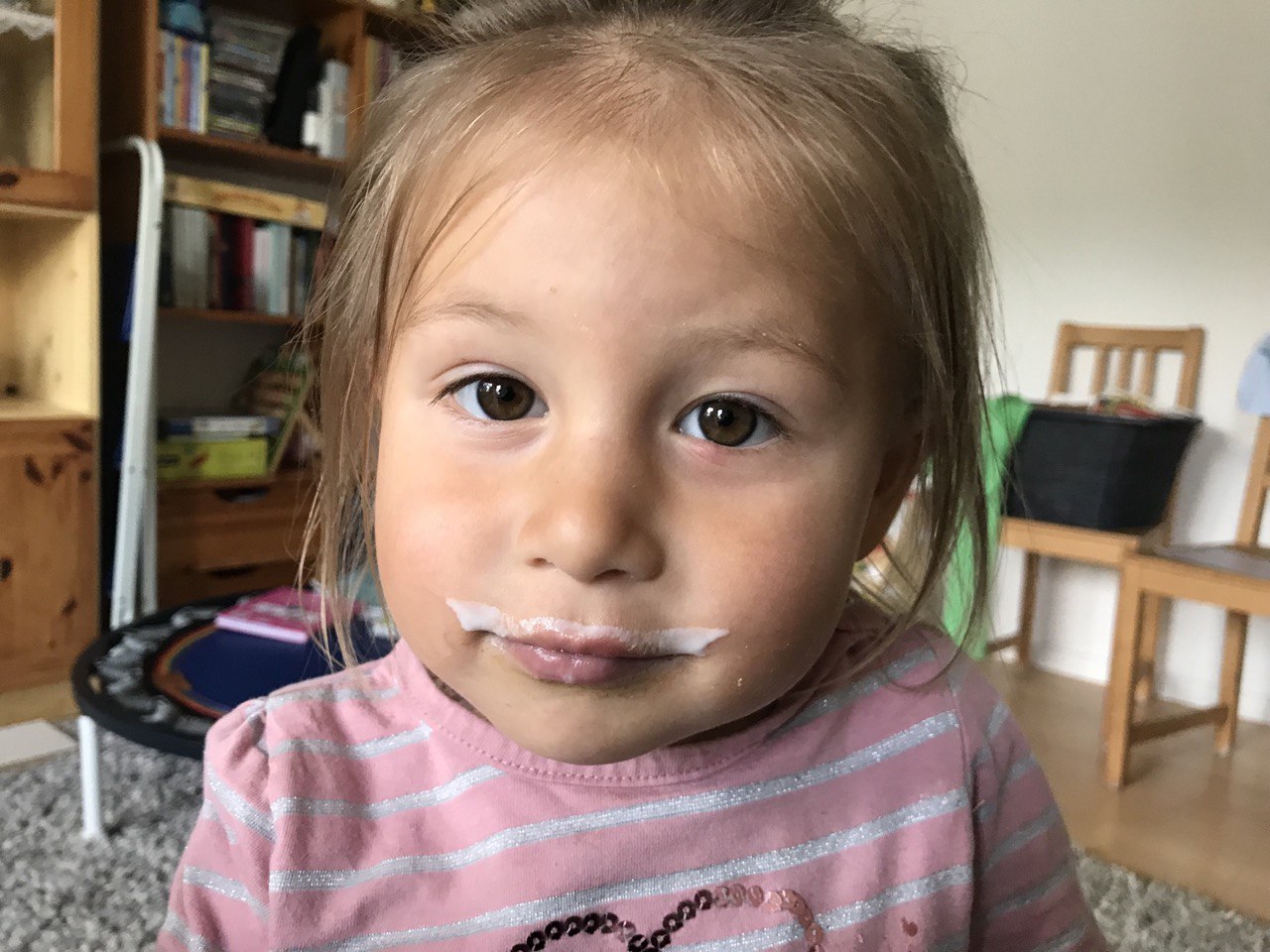 Sunflower gifted by Auntie Victoria, the waffle is homemade by Mom